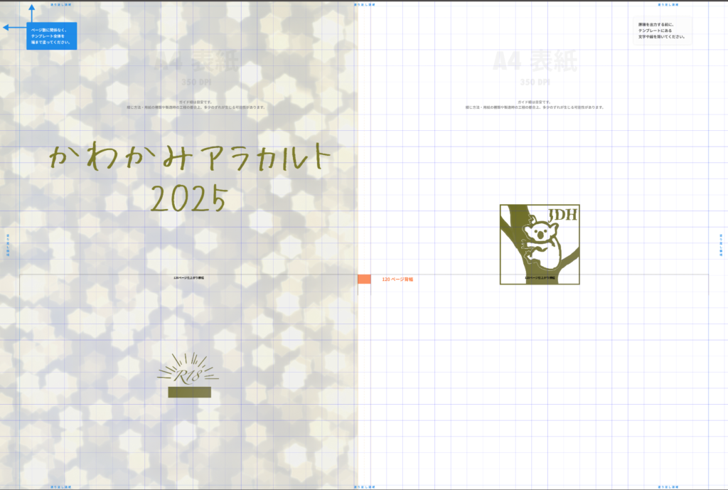 今回は120Pでの背幅で表紙を作りました。背に文字は入れませんでした。
